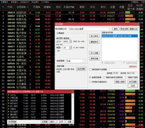 无时间限制,长期可用,全部开源看源码,可个性化修改,拥有优化的《竞价一进二》《强力异动》《主力意愿》等功能选股预警 《好的指标等于至高的阵地,好的公式自然明察秋毫》 MALHJ专业版详细的视频讲解:引入,调用,预警,排序,选股等等功能讲解。点击直接观看: https://meeting.tencent.com/crm/Km6zkygv3b MALHJ专业主图组合公式功能如下: MALHJ专业主图: 1.可以观察到每天资金的实时动向.主力拉升意愿, 2.K线评级功能,8至飓力级为好。 3.拉升意愿越大当天上涨潜力越大. 4.对资金流出也做了“险”字提示. 5.有趋势顶梁柱,中流砥柱信号 6.增加了平台突破画线功能 7.拥有红绿波段强弱功能 8.拥有板块统计功能 9.支持跨周期显示功能,包括分钟,周线,月线,年线周期等。 10.MALHJ智能体智能点评 11.竞价人气,竞价换手,竞价主力,竞价额与昨总额比 12.竞价额与昨竞价额比,板块人气,开盘金额 13.强力异动,8~9级异动提示及选股 MALHJ专业顶底和MALHJ通用区别不大: 1.技术六星评级功能,大于4为标准,超大超好。 2.放量黄柱提示。 3.有估值,价值投资,二维启动等功能。 4.支持跨周期显示。 5.正反蜡烛提示 MALHJ竞价副图: 1.前竞价额,昨竞价额,今竞价额,历史竞价额 2.竞额比,昨前竞价比 3.平行幅度,同比增长等。 图片:2.JPG 图片:3.JPG MALHJ专业竞价排序模式: 1.拥有模式1,模式2,模式3,模式4 2.竞价人气,竞价主力,当日盈亏 3.竞价动能,第一招等功能。 图片:1.JPG MALHJ专业分时: 1.千万通吃率模块 2.千万净额,千万买单,千万卖单 3.竞价模块,主力意愿模块。 4.伏击次数,红波提示 5.过前高(过前高量,过前高点) 图片:4.JPG MALHJ专业多空: 1.与原来的就多了每分钟累计的通吃率 图片:5.JPG MALHJ主力意愿条件选股和预警效果图: 图片:1.JPG MALHJ竞价一进二条件选股和预警效果图: 图片:2.JPG MALHJ主要公式列表: 图片:5.JPG